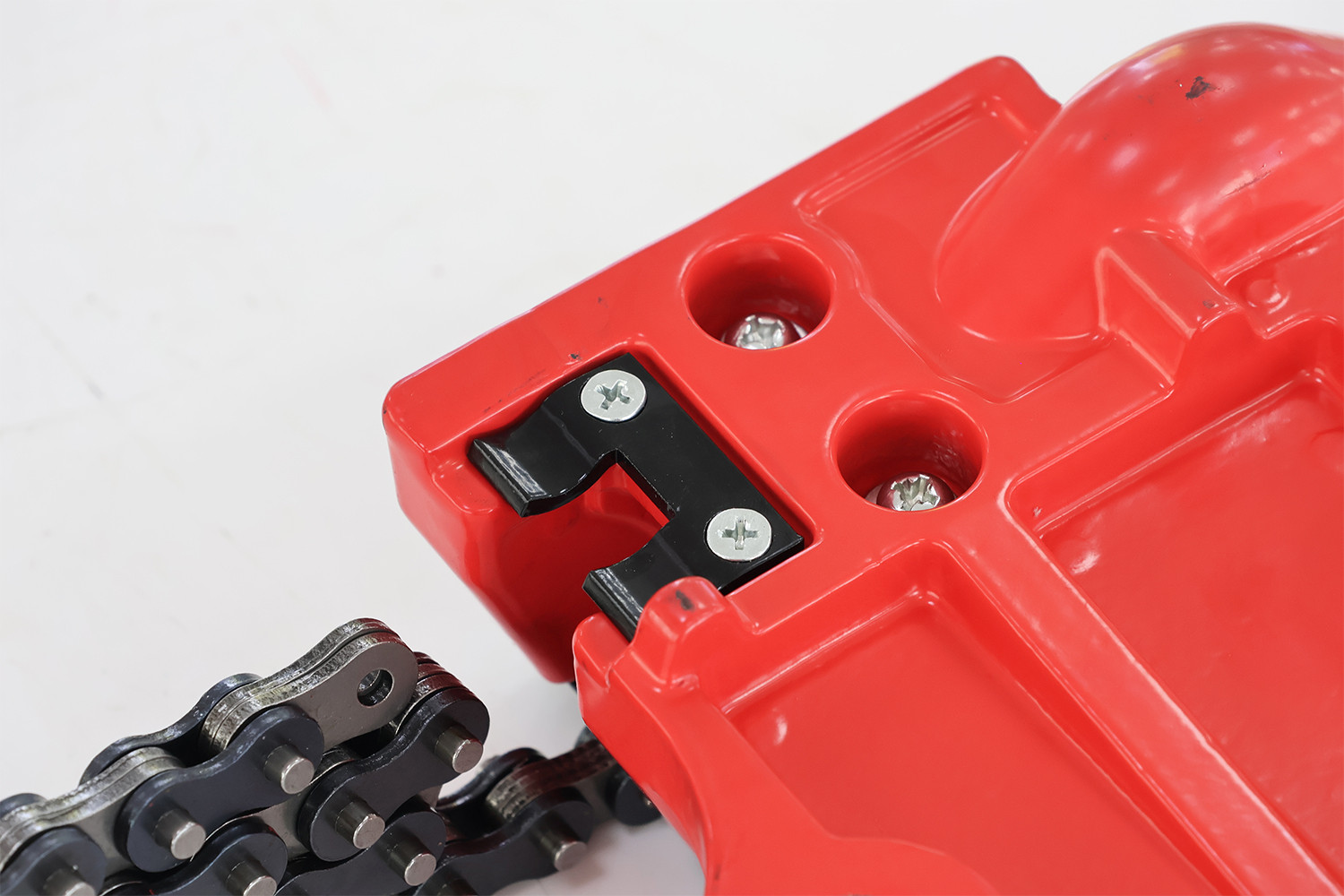 Steel wear plate prevents chain friction from damaging the base and improves long-term durability.